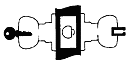 Button or key locks outside. Button released by turning